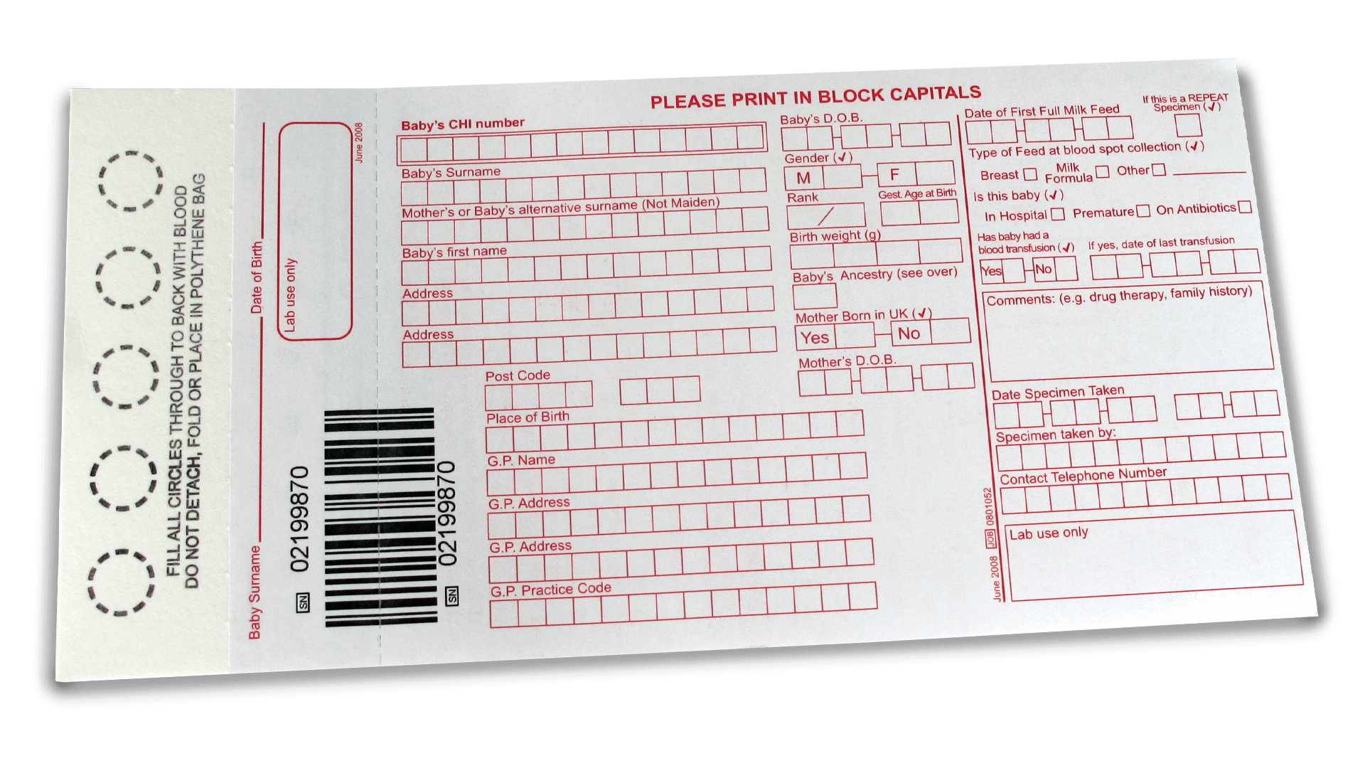 Revvity 226 Sample Collection Device is a dried blood spot collection card comprised of 100% pure cotton linter filter paper validated for even and uniform sample distribution. Revvity can custom-print and manufacture a device format that meets your specialized newborn screening requirements.